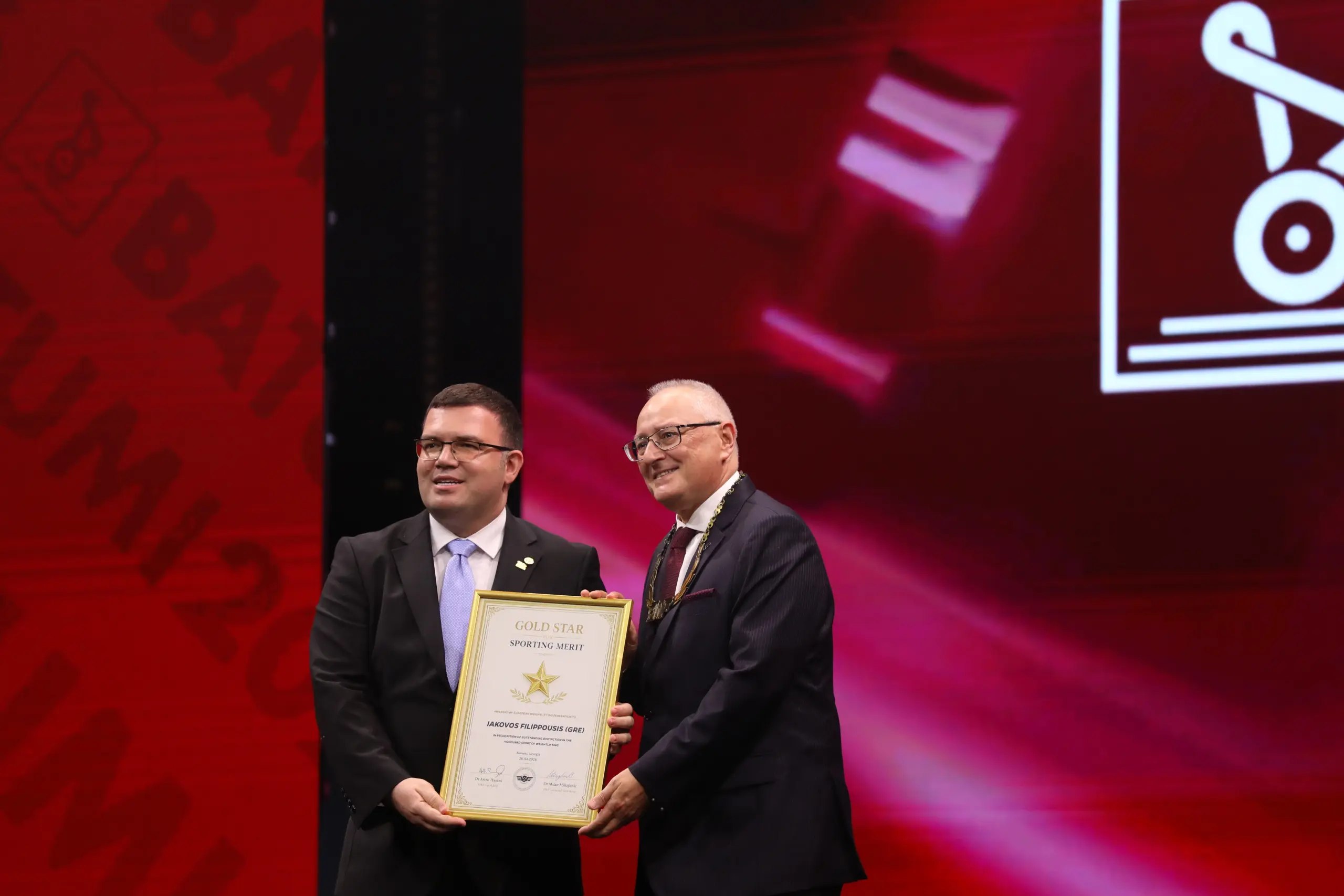 მისალმებების შემდეგ, გაიმართა მსოფლიოს საუკეთესო სპორტსმენთა დაჯილდოება. საქართველოს ძალოსანთა ეროვნული ნაკრების მთავარ მწვრთნელს, გიორგი ასანიძეს ძალოსანთა ევროპის ფედერაციის უმაღლესი ჯილდო „ოქროს ვარსკვლავი“ გადაეცა სპორტის ამ სახეობის განვითარებაში შეტანილი განსაკუთრებული წვლილისათვის. ჯილდოები სპორტსმენებს დოქტორმა ასტრიდ ჰასანმა გადასცა.
