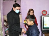 ხელისუფლების წარმომადგენლებმა მარტოხელა დედას ტკბილეული, სურსათი და საყოფაცხოვრებო ტექნიკა მიუტანეს საჩუქრად.
