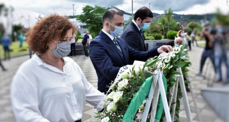 გმირთა მემორიალური დაფა ყვავილებითა და გვირგვინებით შეამკეს აჭარის უმაღლესი საბჭოსა და მთავრობის თავმჯდომარეებმა - დავით გაბაიძემ და თორნიკე რიჟვაძემ.