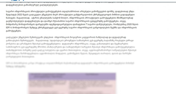 ინფორმაციის თავისუფლების განვითარების ინსტიტუტმა (IDFI) ცალკეული უწყებების მიერ პროაქტიული გამჭვირვალობის უზრუნველყოფის მიზნით 2022 წელს განხორციელებული ღონისძიებების ტრადიციული მონიტორინგის შედეგები გამოაქვეყნა, რომელშიც, როგორც წინა წლებში, დადებითადაა შეფასებული აჭარის უმაღლესი საბჭოს საქმიანობა: „საჯარო ინფორმაციის პროაქტიული გამოქვეყნების თვალსაზრისით არსებული გამოწვევების ფონზე, დადებითად უნდა შეფასდეს 2022 წელს ცალკეული უწყებების მიერ პროაქტიული გამჭვირვალობის უზრუნველყოფის მიზნით გადადგმული ნაბიჯები. მაგალითად, აჭარის უმაღლესმა საბჭომ მიიღო, ინფორმაციის პროაქტიული გამოქვეყნების მნიშნელოვნად გაუმჯობესებული დადგენილება და დაიწყო შესაბამისი საჯარო ინფორმაციის ვებგვერდზე გამოქვეყნება,“- ნათქვამია ინსტიტუტის მიერ გამოქვეყნებულ შეფასებაში. საუბარია დადგენილებაზე, რომლის თანახმადაც, საგრძნობლად გაიზარდა საბჭოს მიერ პროაქტიულად გამოსაქვეყნებელი საჯარო ინფორმაციის ნუსხა.