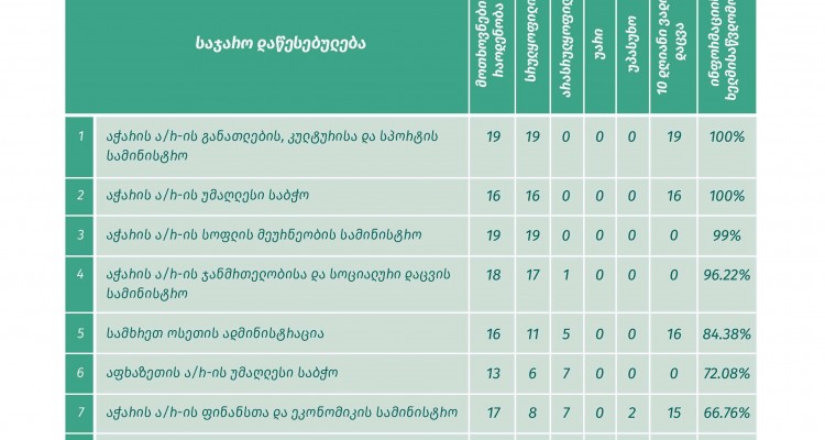 აჭარის უმაღლესი საბჭო, ინფორმაციის ხელმისაწვდომობის თვალსაზრისით, 100%-იანი მაჩვენებლით, ამჯერადაც საუკეთესოთა შორისაა.