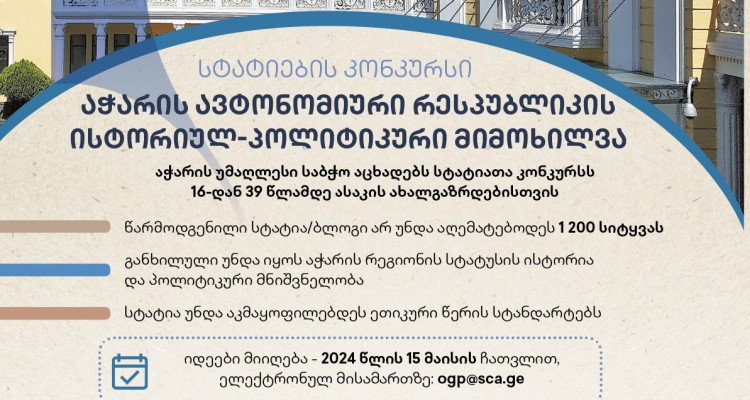 - გამარჯვებული ნაშრომი გამოქვეყნდება აჭარის უმაღლესი საბჭოს ვებგვერდზე - sca.ge.